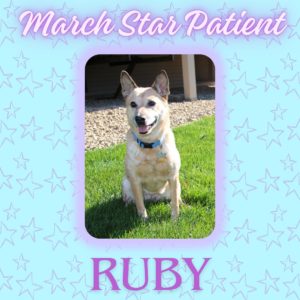 “Ruby is a lover. She loves her people, chasing her sister Rio, going on walks, and napping in the sun. She also loves other people, other dogs, food, belly rubs and stealing Rio’s bed. She brings great joy and lots of loose fur to everyone she meets.”