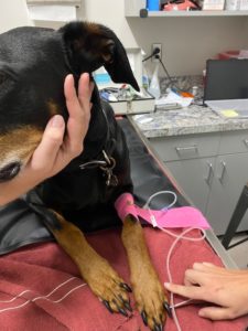 After the exam the CVTs will place an IV catheter. This allows the doctor to have immediate access to your pet’s vein. Quick access to a vein is crucial in the event of an emergency. The catheter will also connect to an IV fluid line. IV fluids help maintain your pet’s blood pressure during the procedure and help flush out the anesthetics after the procedure.