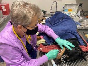 Once your pet is asleep, the CVT will place an ET tube in your pet’s trachea. This tube delivers oxygen and inhalant anesthetic to maintain your pet’s anesthesia during the procedure. The tube also blocks water and debris from entering your pet’s airway.